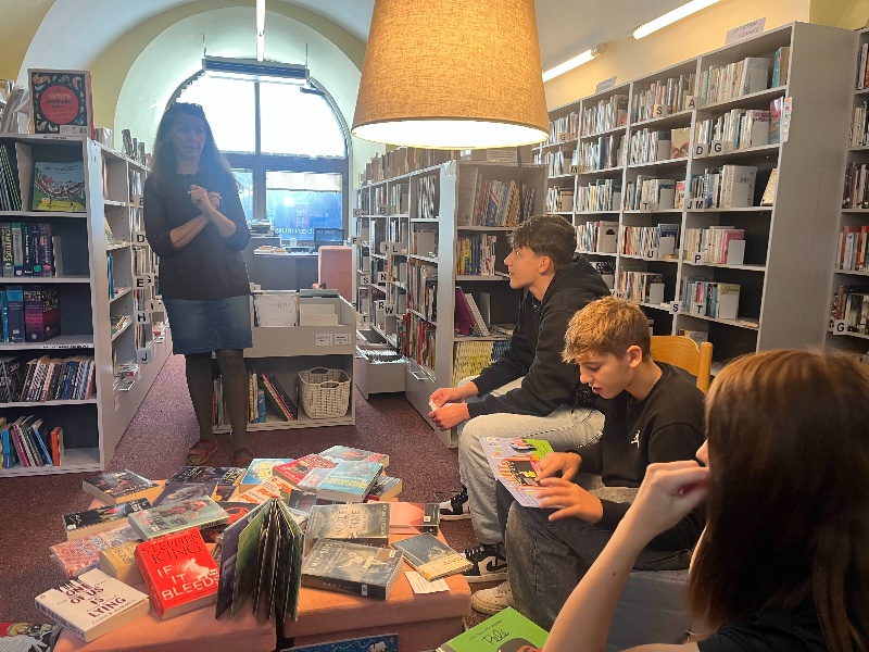 Ve čtvrtek 23. 10. 2025 jsme s žáky 9. A a 9. B navštívili Britské centrum Knihovny Univerzity Palackého v Olomouci. Paní knihovnice nám představila, jak knihovna funguje, co všechno nabízí, a poté si s dětmi povídala o důležitosti knih a čtenářské gramotnosti. Nakonec si pro děti připravila anglickou aktivitu na téma limeriky. Mgr. G. Novotná